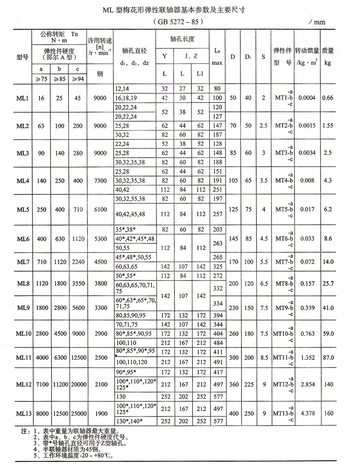 ML型梅花形彈性聯(lián)軸器